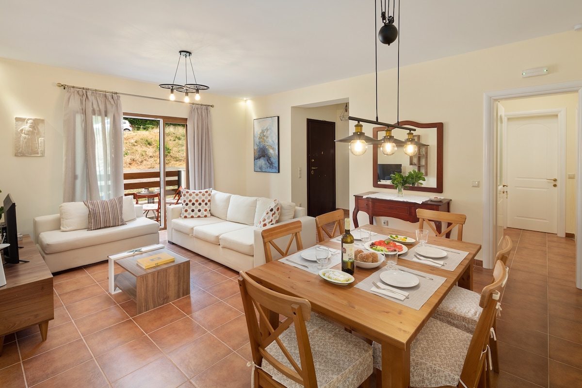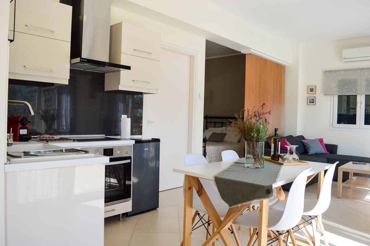 Corfu Lavender - это просторная квартира на первом этаже с выходом в сад с видом на зеленый пейзаж. Из окон открывается вид на церковную колокольню Айос-Прокопиос. Это прекрасное место для спокойствия и умиротворения, окруженное оливковыми и кипарисовыми лесами, типичными для Корфу. Это яркий, спокойный ретрит, идеально подходящий для цифровых кочевников, состоящий из спальни, ванной комнаты и гостиной с кухней. Подключение к Интернету Starlink, частный паркинг.