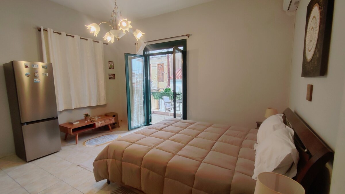 Наслаждайтесь простыми вещами в этом теплом и тихом месте для проживания в центре города Каламата. Идеальное место как для отдыха, так и для деловых поездок, со всеми практическими удобствами. Он расположен рядом с автобусной остановкой и имеет удобную парковку. Всего в минуте ходьбы находится центральная площадь Каламаты, где вы можете насладиться кофе, едой и прогулкой по многочисленным магазинам.
