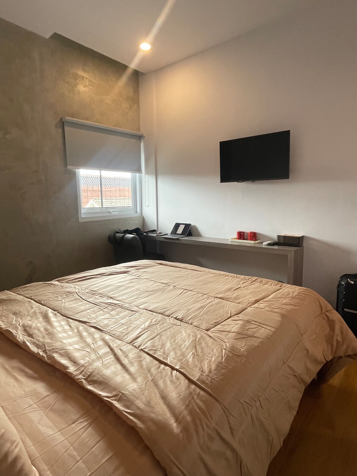 Комфортабельные номера с 3 спальнями, 2 ванными комнатами, гостиной, кухней и патио. Дом состоит из 2 этажей с деревянными орнаментами, которые создают естественное впечатление. До этого места легко добраться, всего в 1 минуте от шоссе и в 10 минутах от аэропорта. Вокруг гостиницы много закусочных, продуктовых магазинов и минимаркетов. Домашний, чистый и ухоженный, который находится в комплексе с охраной с одним присмотром ворот. Лучший выбор для ежедневной аренды дома по отличной цене с удобствами.