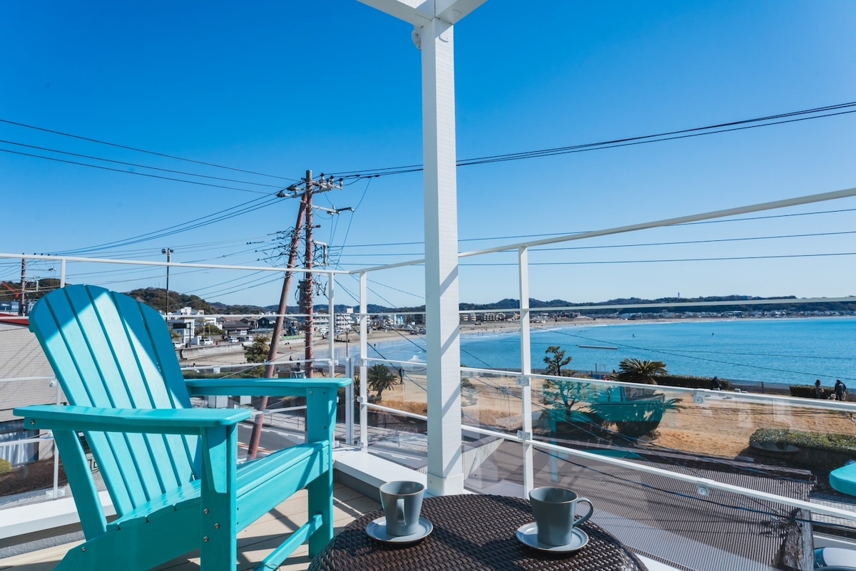 Блаженные каникулы, где вы можете расслабиться на горизонте и расслабиться на берегу моря Камакура Ситигахама | Рядом со станцией, рядом с морем