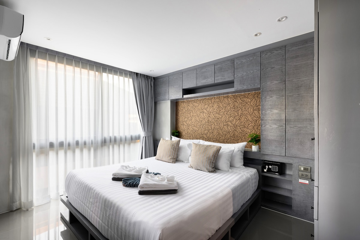 Стильный спокойный концевой блок с двойной экспозицией и видом на горы, балкон получает освежающие бризы в течение дня, так как он не подвергается воздействию самого сурового солнечного света, обеспечивая прохладное и приятное время в этом уникальном и спокойном отдыхе. Частное высокоскоростное подключение к Интернету включено в стоимость. Бесплатный доступ в тренажерный зал. Пляж Камала находится в 10 минутах ходьбы (700 метров) или в нескольких остановках на бесплатном шаттле. CityGate идеально подходит для отдыха, удаленной работы, оздоровления и фитнеса.