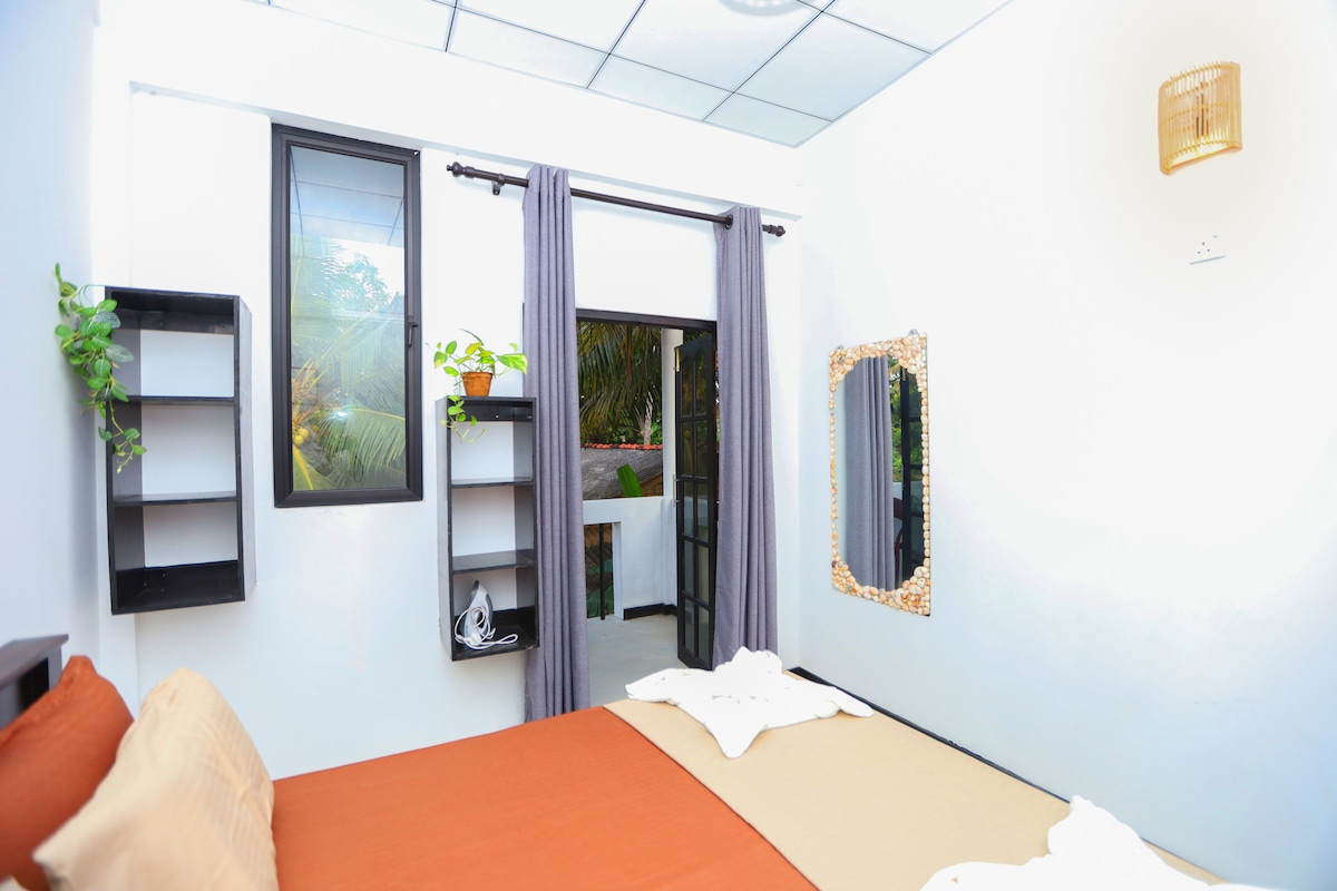 DevilRock Bungalows features two distinct accommodations, SAND and OCEAN, both located in the same charming house, which was once the old teachers' house in Kapparathota, where children used to gather for Sunday school. Newly renovated in late 2024 and early 2025, both bungalows offer modern comforts while retaining their unique charm. Although they share a common structure, each bungalow provides total privacy and offers a unique ambiance, making them feel like two worlds apart. This is SAND!