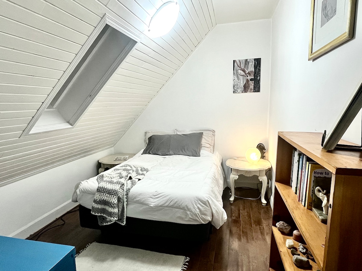The Nest is a bright and comfortable queen suite with a private ensuite bathroom, including both a bathtub and shower. Located on the lower level of our lakefront home, the room offers a peaceful and relaxing setting just steps from beautiful Okanagan Lake. Guests can enjoy easy access to our private dock — perfect for a morning swim, coffee by the water, or unwinding at sunset. This room is ideal for couples looking for a quiet and comfortable lakeside getaway in Lake Country.
