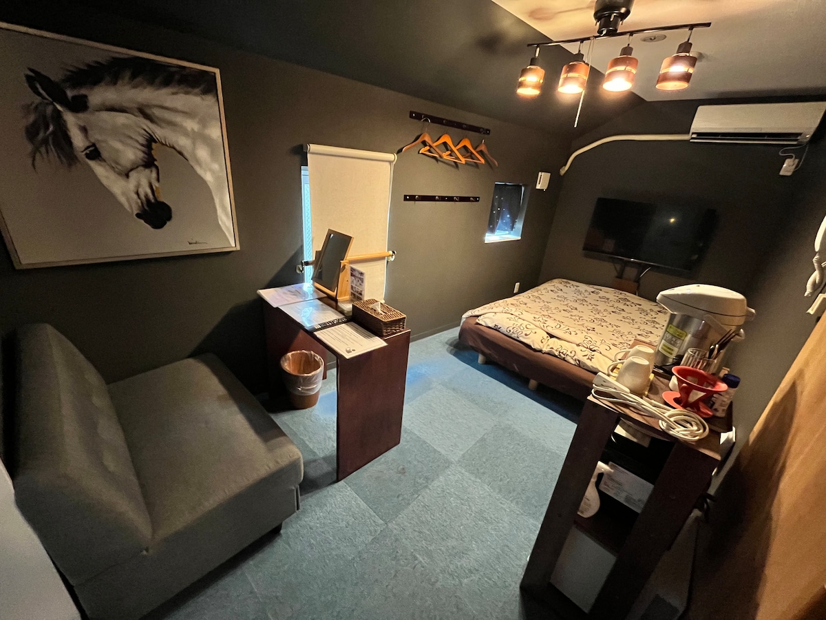 3–5 минут пешком до станции JR Uguishudani. Квартира в вашем распоряжении. На одном этаже есть одно жилье.( Держите отдельную) Эта комната крошечная(13 кв. м)- для 1 или 2 взрослых. ※ 1 двуспальная кровать (120×195 см)Мягкий матрас. Это немного тесно для двух больших людей. ・1 ванная комната с 1 туалетом. ・Полностью оборудованная кухня, ・кондиционер (прохладный/горячий), Wi-Fi, утюг, фен, стиральная машина, полотенца и т. д. ※1-й этаж/Я не рекомендую гостям, которые чувствительны к шуму. ※Вход - раздвижная стеклянная дверь на улице.