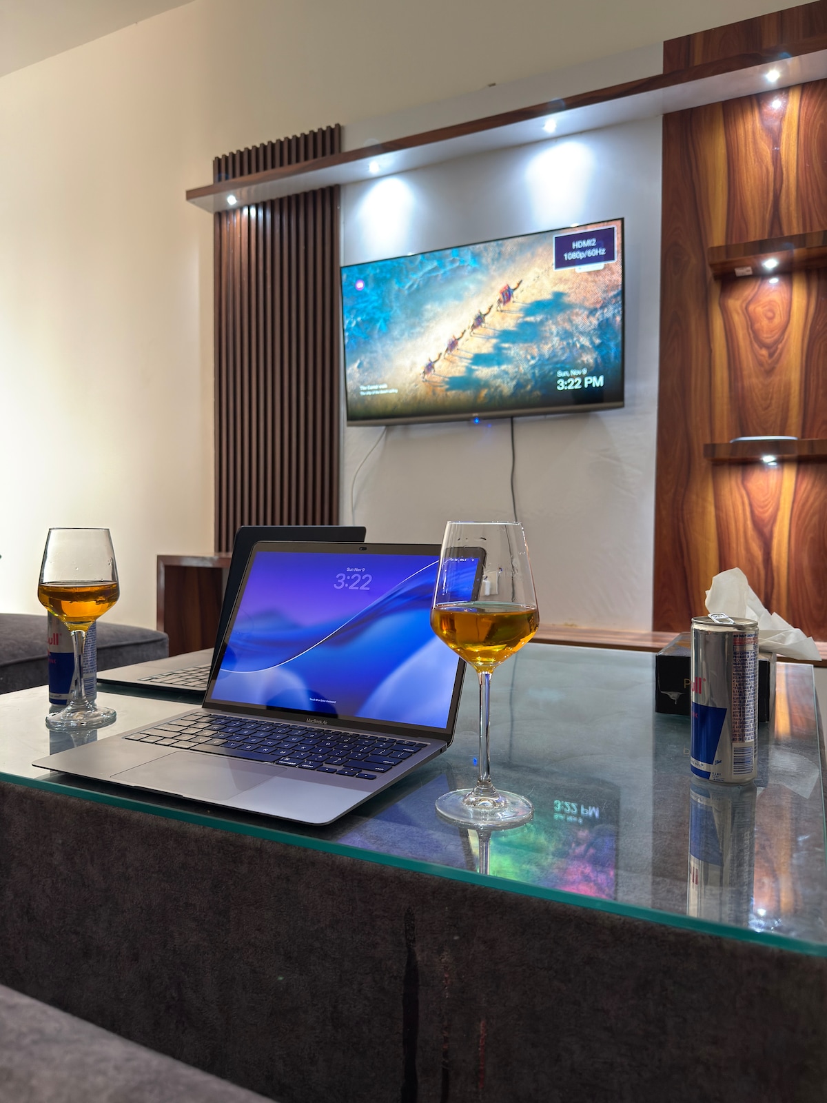 Добро пожаловать в нашу роскошную городскую студию, святилище стиля и утонченности в оживленном центре Гургаона. Отличительной особенностью нашего лофта является фирменная черная цветовая гамма, которая добавляет элегантности и драмы в пространство, что делает ваше пребывание комфортным и потрясающим. Зайдя в нашу элегантно меблированную студию, вы увидите наши плюшевые черные кресла. Эти два роскошных кресла являются центральным элементом, предлагая идеальное сочетание современного дизайна и исключительного комфорта.