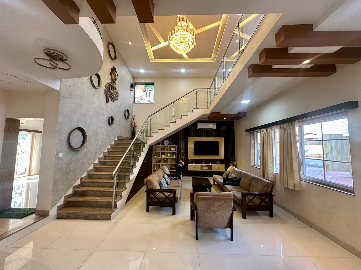 - бассейн 22x8x4; - Стол для бассейна/снукера. - Костровая яма на улице. - 55-дюймовый Smart TV с Netflix - Домашний кинотеатр HiFi 5.0, динамики Marantz AMP и Taga. - 8-дюймовые ортопедические матрасы и качественная мебель. - Полностью оборудовано кондиционером - 5 кондиционеров. - Ванна в главной ванной комнате. - Зеленые газоны с фруктовыми деревьями; - Характеристика воды в саду. - Bluetooth-колонки на открытом воздухе. - Полностью оборудованная кухня - Барбекю. - Услуги смотрителя и уборки. - Карром, бадминтон и настольные игры. - Резервное питание инвертора. - Спокойно и уединенно.