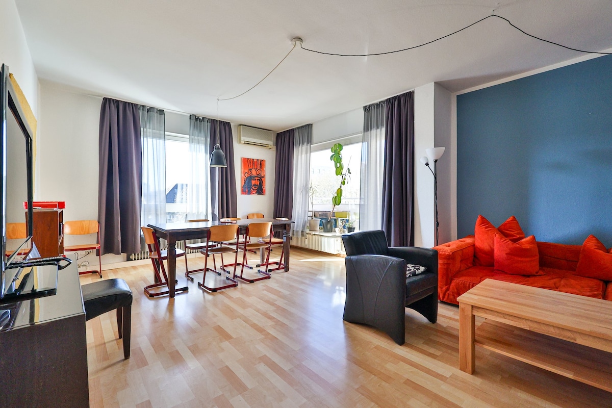 Свежая и стильная отремонтированная 4-комнатная квартира на верхнем этаже (полный ремонт 11/2025) прямо напротив главного вокзала Карлсруэ. Светлая ванная комната с ванной, отдельный туалет, хорошо оборудованная кухня с обеденной зоной и видом на зелень. Французские балконы с видом на город и Пфальц. Идеально подходит для семей, групп, отдыха в городе и деловых поездок. Строго запрещено курить в доме (внутри и на балконе, дополнительная плата за уборку). Увлеченные хозяева с 2019 года. При необходимости вносится залог с карты (250–1000 евро).