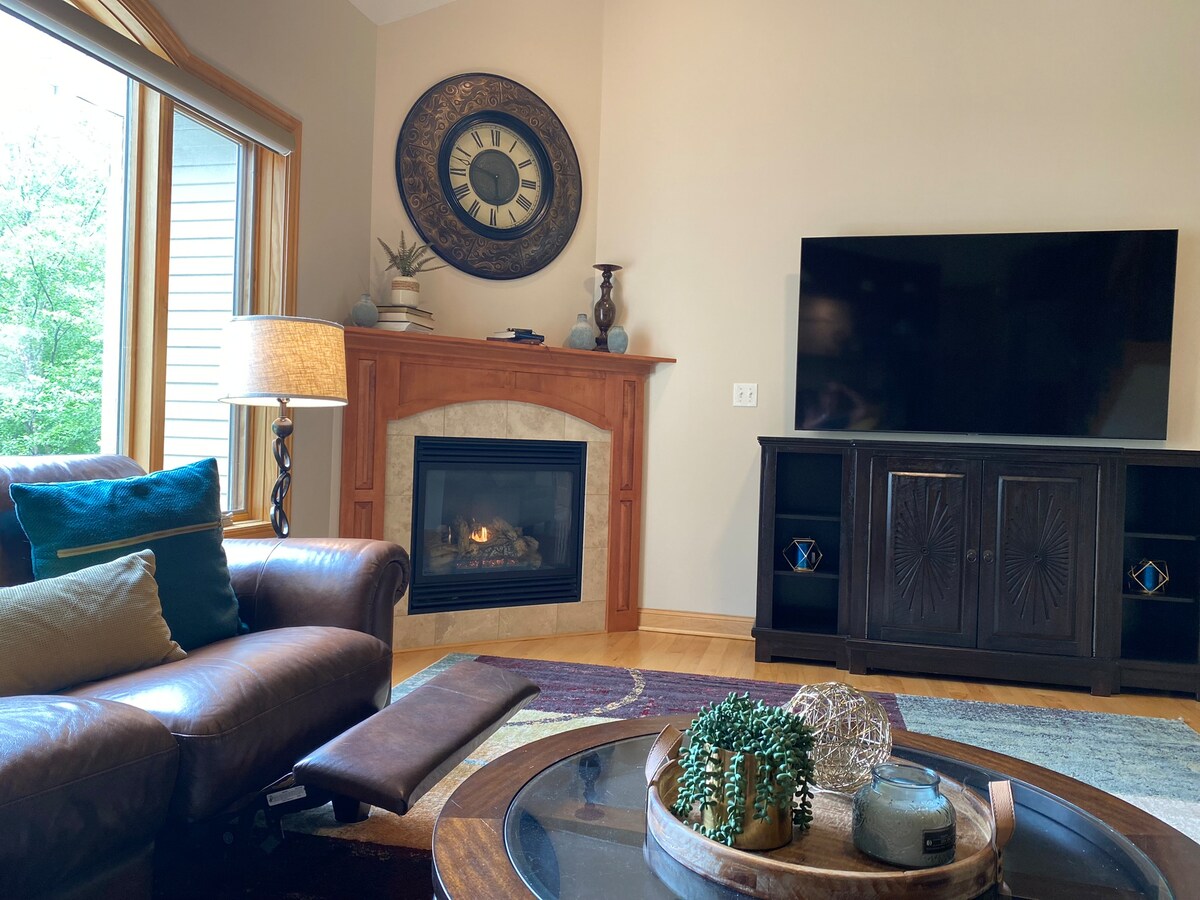Расположенный в спокойном углу, этот дом идеально сочетает спокойствие и доступность. Рядом с кампусом Майо и ключевыми достопримечательностями Рочестера. Наслаждайтесь удобными кроватями, хорошо оборудованной кухней и огороженным двором с садами патио. Это отличное место для семейного отдыха с тремя смарт-телевизорами, быстрым Wi-Fi и различными развлечениями в помещении и на открытом воздухе. Мы стремимся обеспечить гибкие условия прибытия/выезда, когда это возможно. Доступен Rollator.