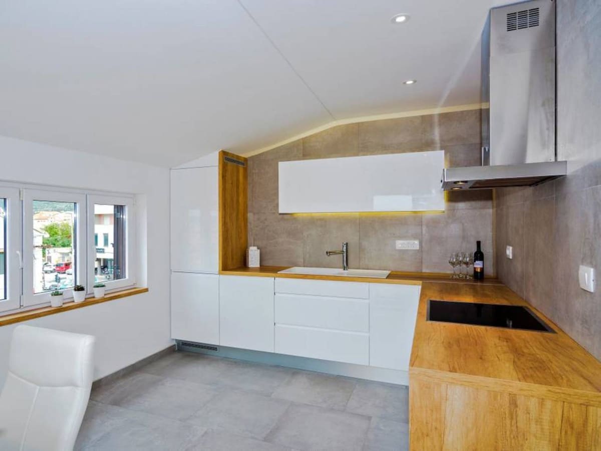Stay in the first row by the sea in this modern seafront apartment in Kaštel Kambelovac. Enjoy a private balcony with breathtaking open sea views – perfect for morning coffee and sunset evenings. Peaceful location just steps from the beach, yet close to restaurants, cafes, Split and Trogir. Ideal for relaxing Mediterranean escape.