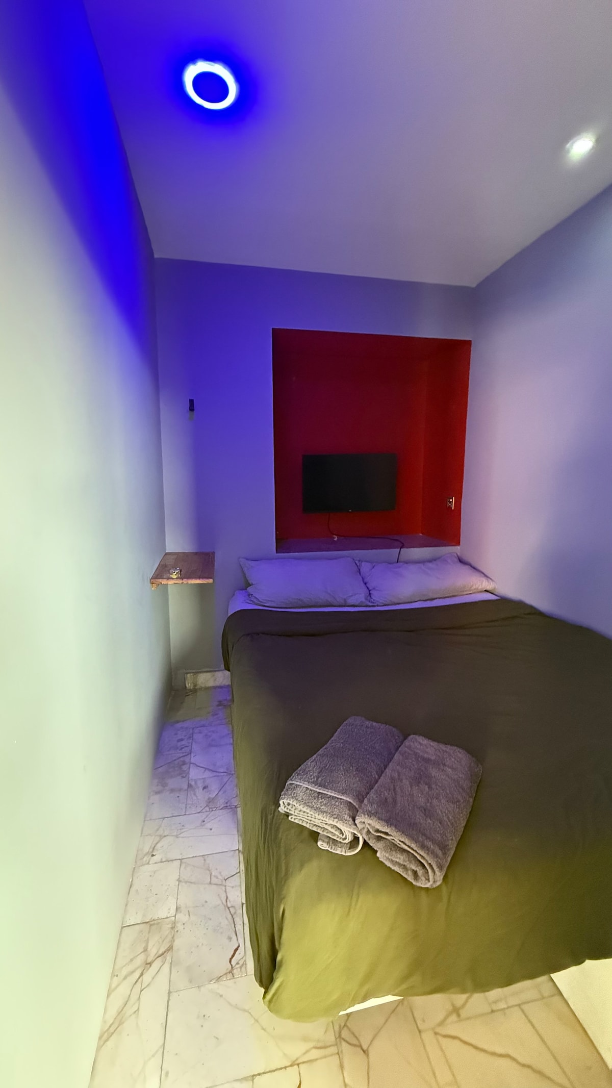 Our smallest but most affordable private room! This secure, cozy 4m² space is designed for the savvy solo traveler or couple who spends most of their time exploring. You get a private, lockable space with a Smart TV, excellent Wi-Fi, and unparalleled access to all our premium shared amenities, including the Jacuzzi, 2 Terraces, Shared Kitchen, and BBQ area. Located on the ground floor, it's quick and easy access to the action. Shared bathrooms are just steps away. Best value in Patong!