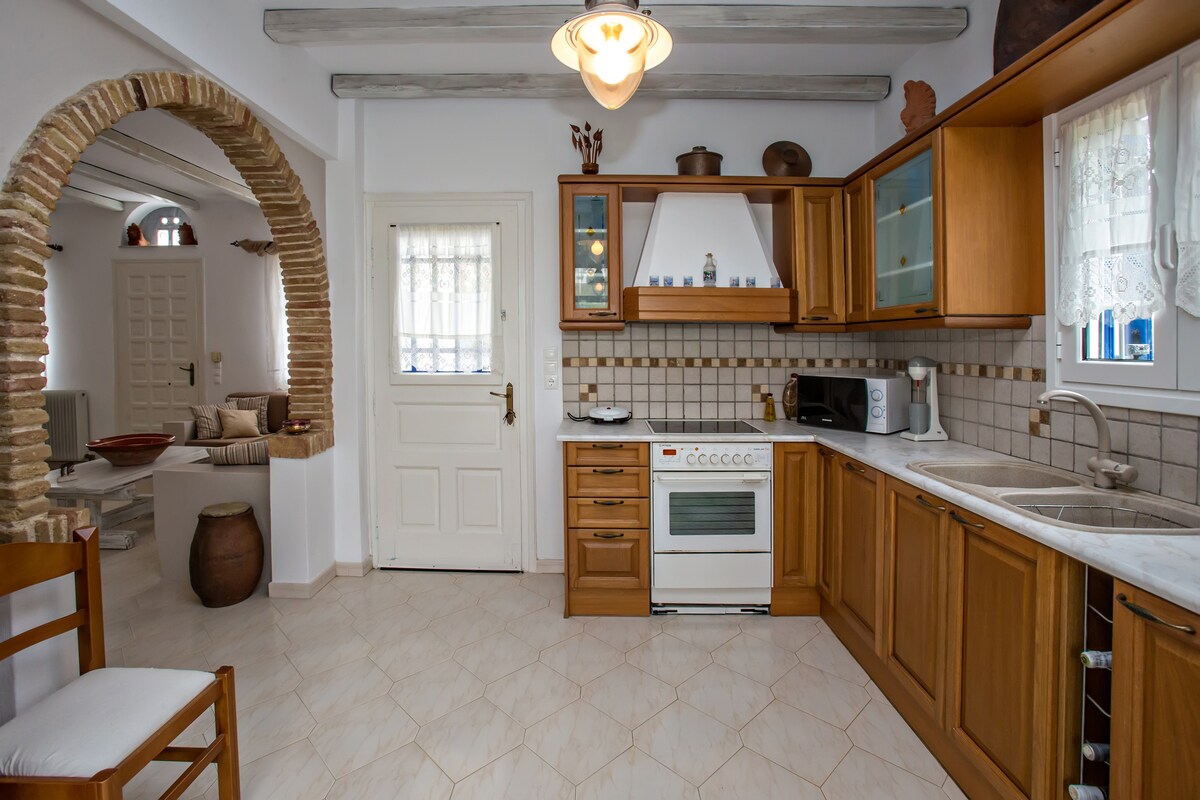 Дом расположен на пляже Айос-Романос. До пляжа можно дойти пешком. Здесь есть таверна, небольшое кафе и пляжный бар. Диваны и кровать размера KIng встроены. Самая выдающаяся особенность дома - уникальный вид, которым можно наслаждаться из каждой комнаты и с балкона. После каждого жилья дом санируется с помощью пароочистителя и моющих средств, содержащих хлор. Во время вашего пребывания и при желании дом убирается каждые 3 дня бесплатно.