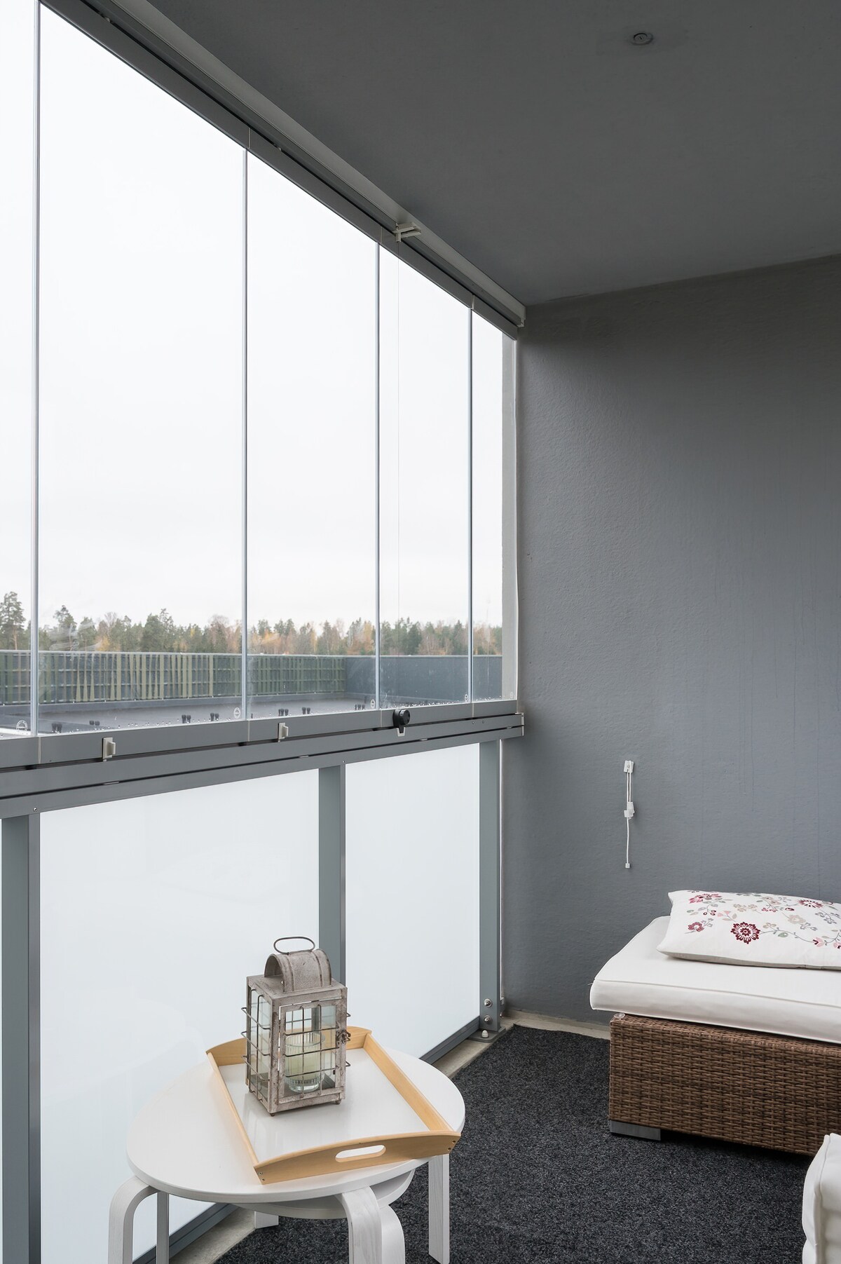 Modern air conditioned 43,5 sqm apartment in tower building next to Matinkylä metro station and Iso Omena shopping mall (2018 shopping mall of the year NCSC). Amazing 16th floor views (14th living floor) from the large fully glazed balcony with seating area. Helsinki city center only a 20 min metro ride away. One bedroom with king size continental bed (180 cm wide) and the living room modular sofa consists of 3 separate 80x200 cm beds with easy opening mechanism.