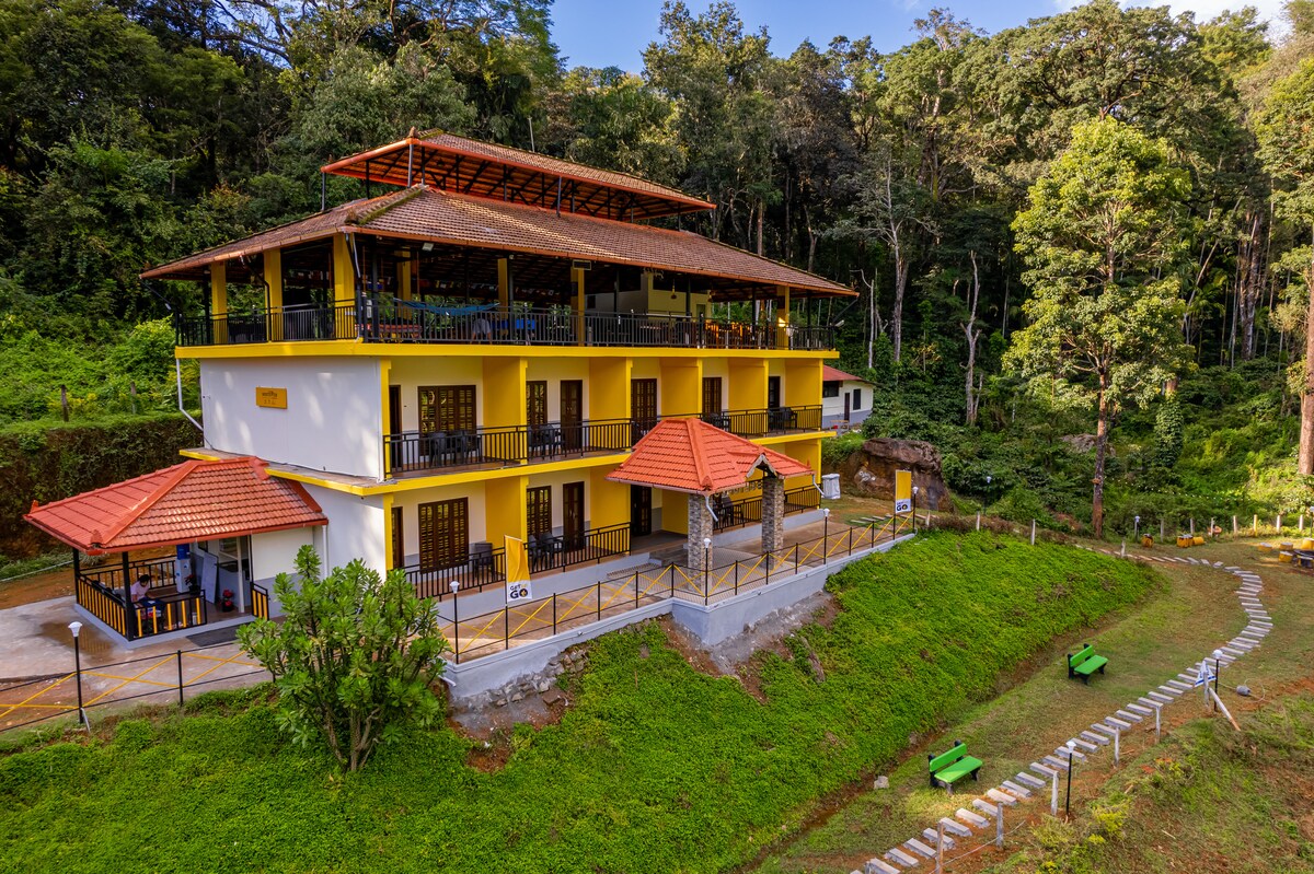 Насладитесь гламурной атмосферой посреди обширной лесной земли в окружении кофейных плантаций. Мадикери - идеальный отдых от городской жизни. В наших номерах есть балкон, с которого открывается прекрасный вид на наш частный пруд. Просторный хостел покрыт прохладными зелеными оттенками и мгновенно успокаивает вашу душу. Отправляйтесь в нашу деревенскую зону для костра и пообщайтесь с другими туристами. Получите ежедневную дозу витамина D, так как Skydeck здесь приносит достаточно естественного света.
