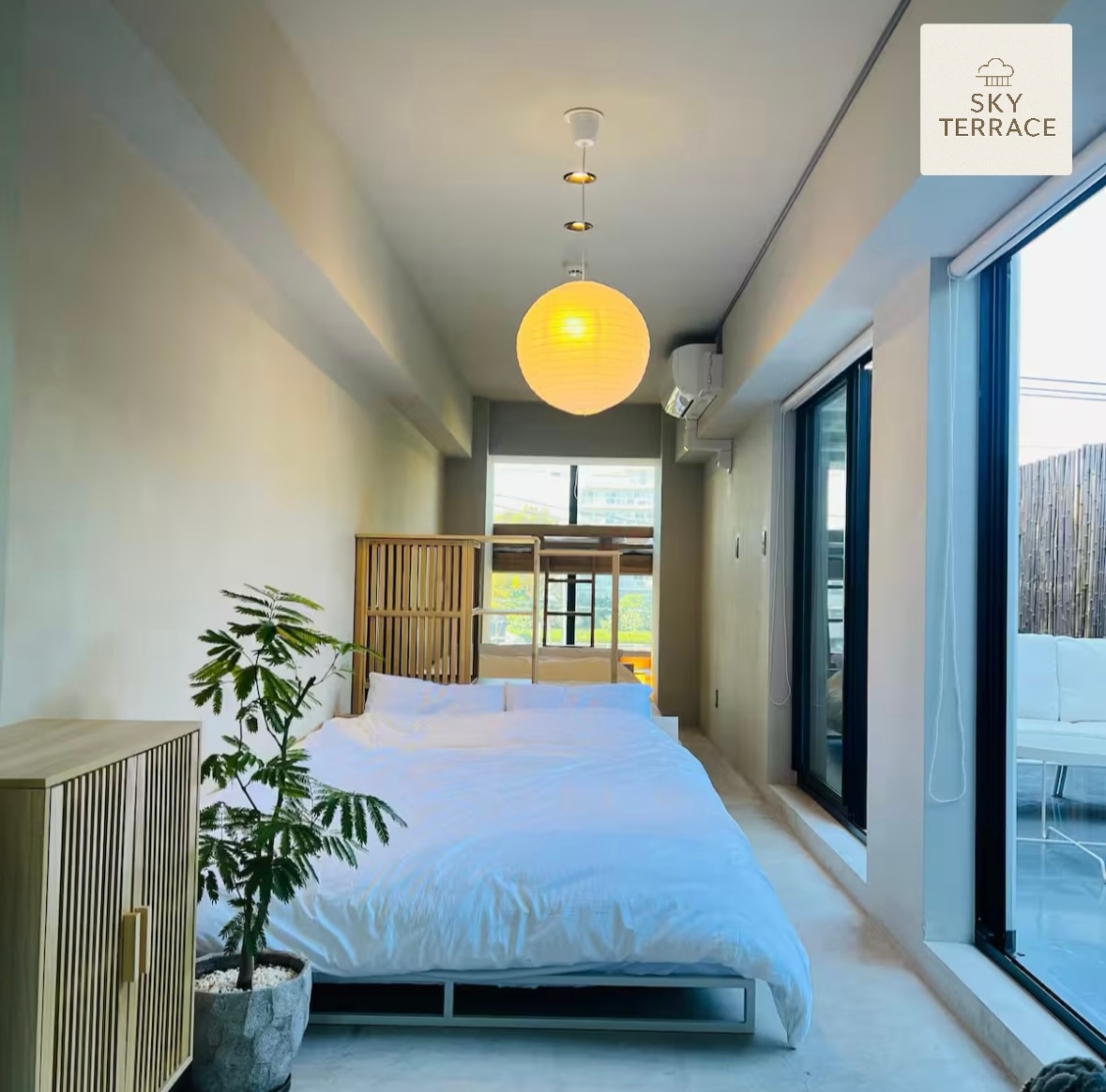 このリスティングは、ご家族や仲間と中長期の滞在を楽しむ拠点に向いています。 都心に近い静かな住宅エリアにある2023年オープンのアパートメントホテルです。周辺には水辺、公園、神社があります。 35㎡の広々とした室内は、日本風デザインです。1台のクイーンベッド、3つの布団があり、大人5人まで泊まれます。(2歳未満乳幼児の添い寝は無料です。) 自炊のできるコンパクトキッチン、全自動の洗濯乾燥機、広々としたサイズのバスルーム、独立したトイレがあります。 アンドロイドTVやフリーWi-Fiの環境も整備されていますので、室内で過ごしたりお仕事をするにも充分な環境です。 ゲストに開放されたルーフトップでリラックスすることもできます。 チェックインは、タブレットを使う無人のチェックインシステムですので、深夜でも気兼ねすることはありません。ドアは最新式のタッチキーシステムで管理されています。 最寄りの駅(住吉駅・半蔵門線・都営新宿線)の出口から徒歩5分の場所にあり、近くにはスーパーマーケットなどがあります。 こちらの落ち着いた宿泊先で、ご家族一緒におくつろぎください。