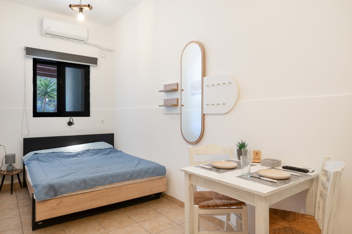 Мезонет площадью 27 кв. м расположен в одном из традиционных дворов поселения всего в 3 минутах ходьбы от порта Кеа, где много ресторанов и кафе. Всего в 2 км находится космополитичный Вуркари, где можно насладиться едой или напитками у моря. Центр острова, традиционная Иулида, находится в 8 км и идеально подходит для любования закатом. Она идеально подходит для пар или компании друзей.