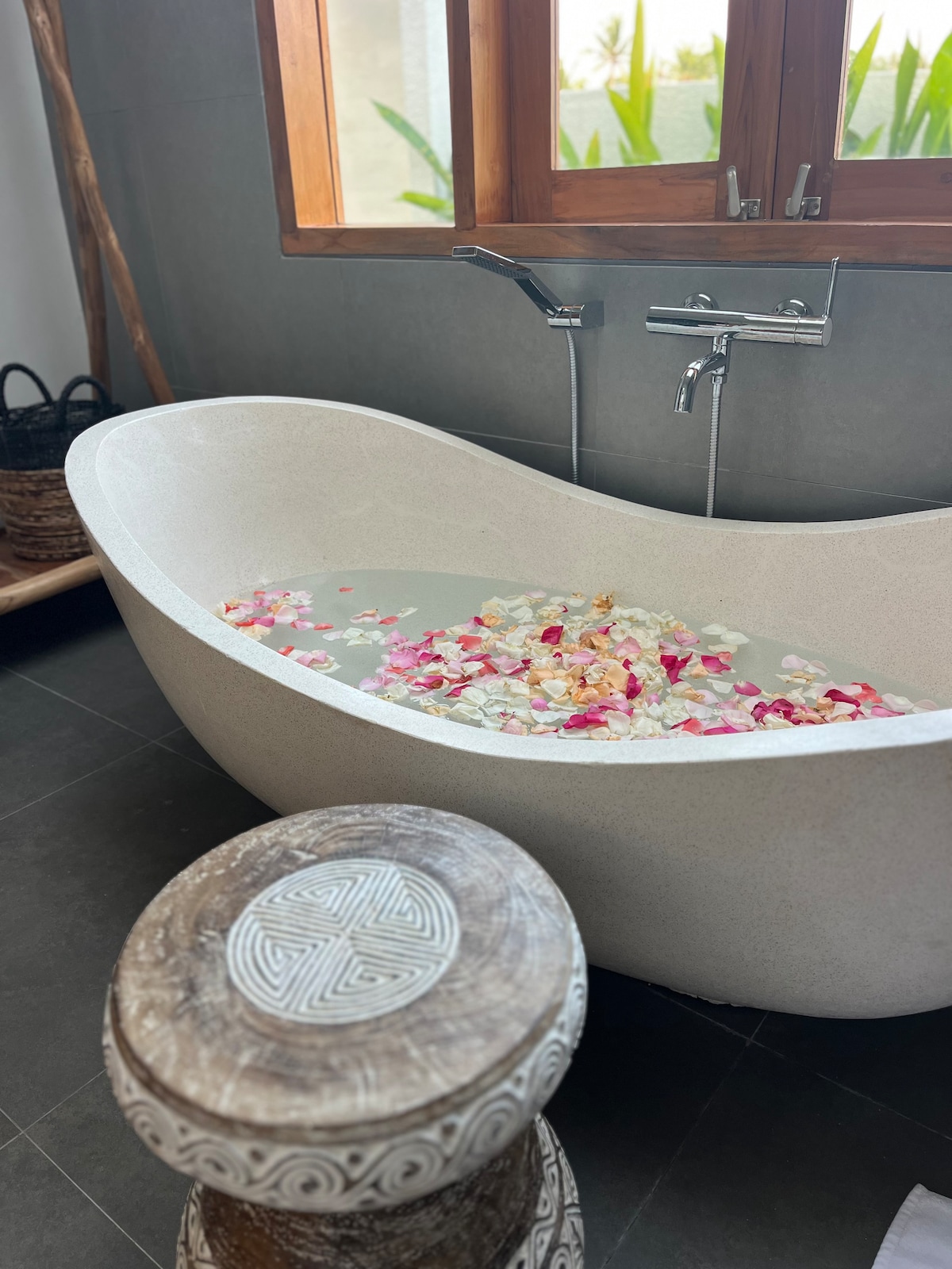 Get the true experience of living on the beautiful island of Bali when you stay at Sanga. Located in the small village of Kedungu, only a 10-minute walk from the beach, each of the three houses emit organic island elegance. Our hidden gem is tucked away in the back of a family compound, accessible by a 40 meter path (no cars, scooter ok), that skirts the property owned by our local friends. On your way you will probably be escorted by barking but harmless family dogs - we hope you don't mind.
