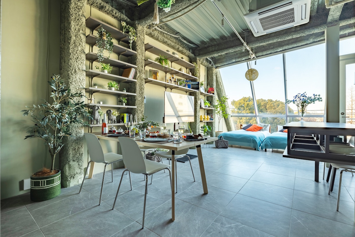 — Суй — Светлая, уютная комната с мягкой зеленой акцентной стеной и наклонным потолком. Всего в 3 минутах от станции Вакабадай и рядом с магазинами, район удобен для длительного проживания и работы. Легко добраться до центра Токио. Максимум 2 гостя. < Доступ > • Синдзюку/Сибуя ~30 минут. • Син-Йокогама ~60 мин. • Аэропорт Ханэда ~80 мин. < Поблизости > Супермаркеты, магазины, рестораны, прачечная, парковка, тренажерный зал. < Достопримечательности > Санрио-Пуролэнд, Йомиуриленд, цветение сакуры.