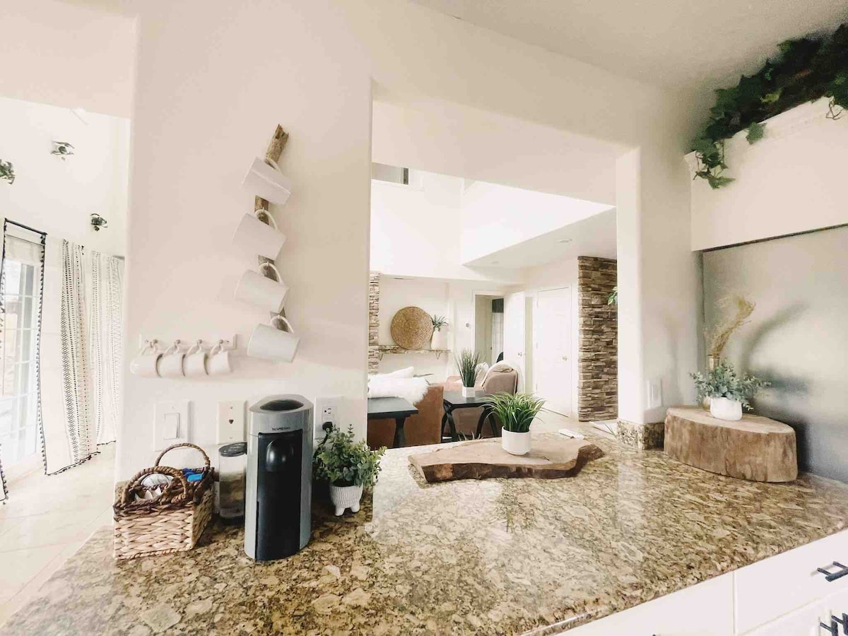 Комфорт и удобство в каждой детали. Этот современный дом сочетает в себе спокойный деревенский шарм с легким доступом к жизни маленького города всего в нескольких минутах езды. Внутри вас ждет удобная современная мебель и продуманные детали. Наслаждайтесь полностью оборудованной кухней, удобными кроватями, чистыми и продуманно оборудованными ванными комнатами, уютными креслами в гостиной и быстрым надежным Wi-Fi. Также есть полноразмерная стиральная машина/сушилка и собственный гараж на 2 машины. Идеально подходит для семейного отдыха, деловых поездок или спокойного отдыха.
