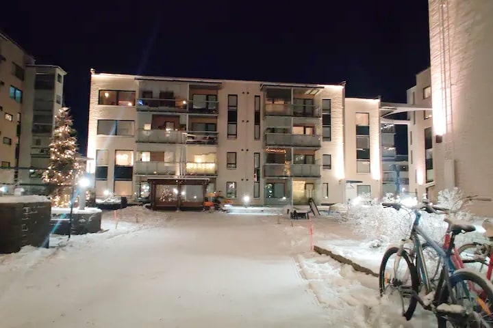 Идеальное и уютное жилье для семей, групп друзей или работы, как для отпуска, так и для деловых поездок. Невероятно красивая и полностью оборудованная двухкомнатная квартира в тихом квартале Кьела в центре Рованиеми. От автобусной остановки Ruokasenkatu, которая находится всего в 200 метрах от квартиры, можно легко добраться на автобусе до деревни Санта, Северного полярного круга, аэропорта и любой точки Рованиеми.