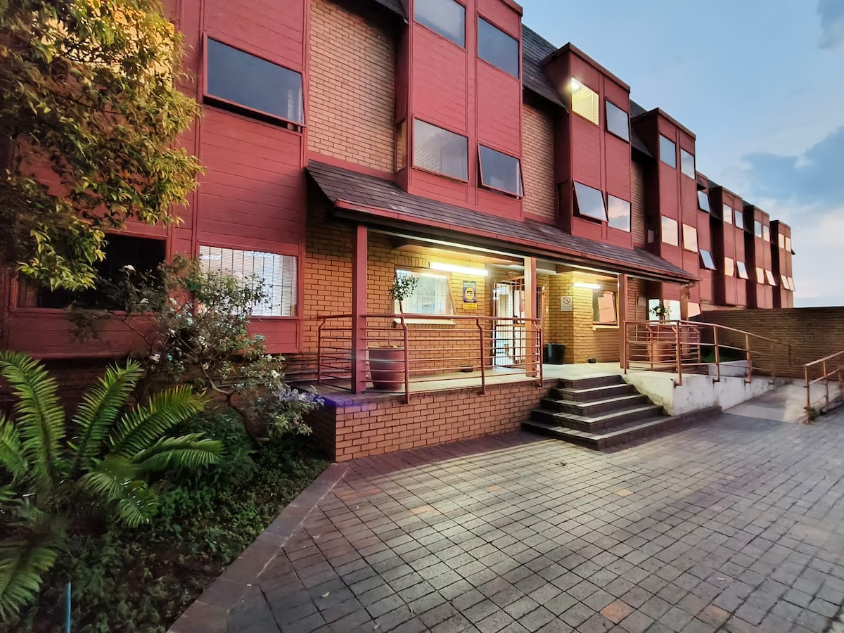 Удостоенный наград отель Blueberry Hill, круглосуточный англоговорящий консьерж и охрана. В этом 6-этажном бутик-отеле есть все необходимое. в одном здании: * Ресторан и бар. * - тренажерный зал. * СПА-САЛОН с гидромассажной ванной и сауной; * Место проведения конференц-связи и свадьбы. * Безопасная парковка в подвале. Следующие удобства находятся в 5 минутах: * Поле для гольфа Eagle Canyon. * Fairway Sky Bar (Golf Simulator). * Падел-теннис (джого И IPR). * Virgin Active Honeydew * Шопинг в торговом центре Blueberry. * Рестораны. * Туристические достопримечательности.
