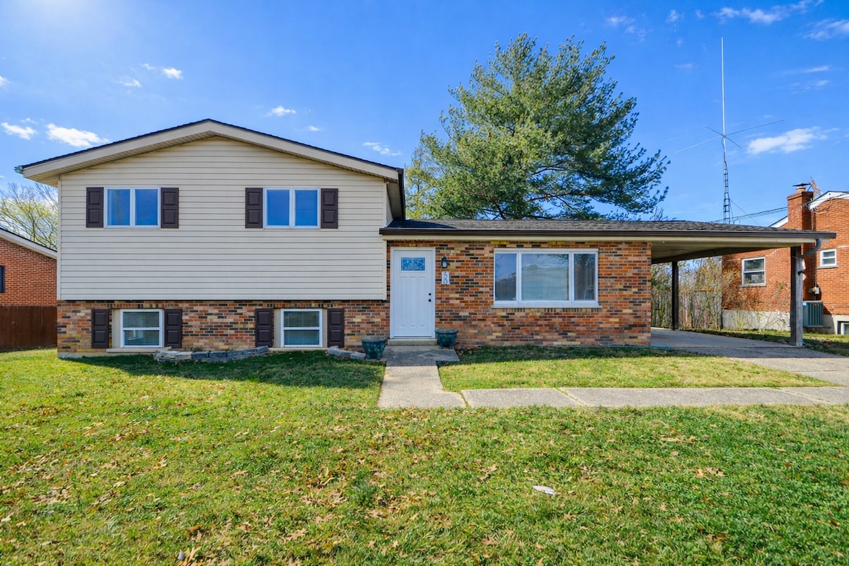 Отлично подходит для отдыхающих, удаленных работников и путешествующих медсестер. В полумиле от Чипотле 1 миля до Texas Road House и множества лучших ресторанов. 1 миля до больницы Святой Елизаветы. Kentucky Derby 1 с четверть мили до Turfway Park Racing and Casino 6 миль до аэропорта. 10 миль до Paycor Staduim 13 миль до океанариума. Музей творения (16 миль) 29 миль до Ковчега Одна двуспальная кровать размера King size и один двуспальный кровать размера Queen size Спать на спальном диване или посмотрите телевизор в подвале, пока стираете белье. Полностью оборудованная кухня.