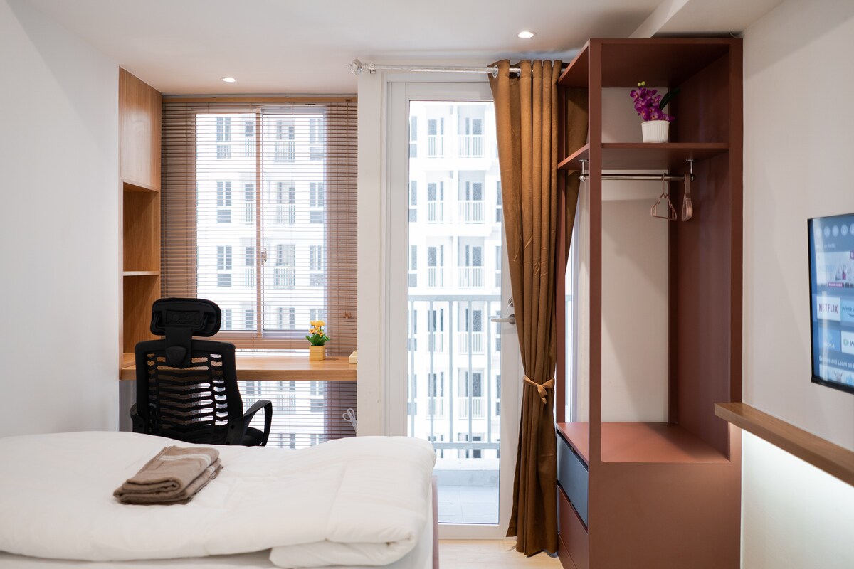 Stay in our brand-new, minimalist studio at Tokyo Riverside, PIK 2. Perfect for solo travelers or couples. Outdoor mall, supermarket, and 90+ restaurants are just 1 minute’s walk away. Close to Aloha Pantai Pasir Putih, Pantjoran PIK, and By The Sea. Long-term stays available at special rates. No pets allowed. Clean, comfy, and convenient — your ideal stay in North Jakarta!