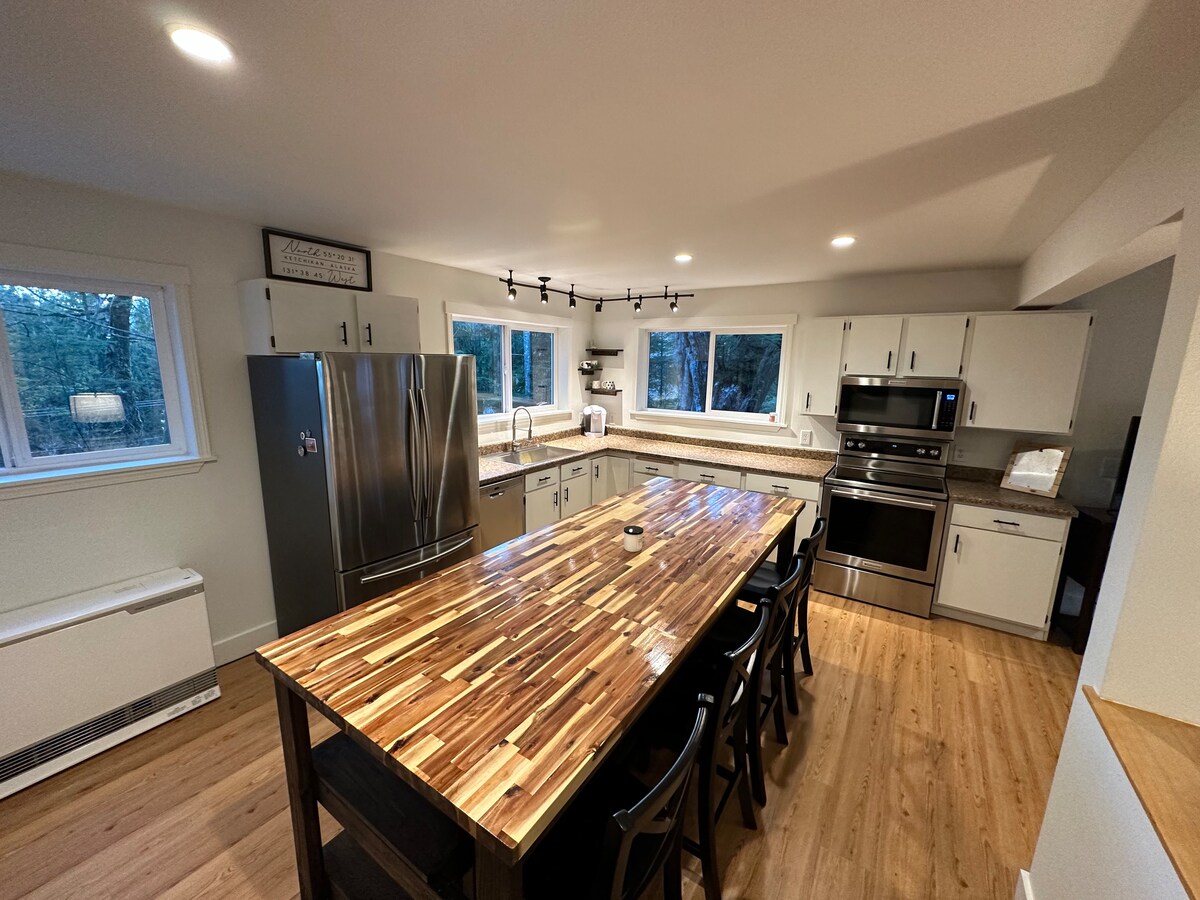 I watched way too many shows of Tiny Luxury Homes and set out to create my own! Here you will find custom built in cabinetry, new flooring, exposed wooden beams, built in full size bed, a sparkling fully equipped kitchen with granite counter tops, gas stove and washer and dryer. My tiny space is not a stand alone building. It’s a converted apartment with the idea of turning dreary into stunning. Water views and two minutes to the bus stop. Walking distance to town. Smart car rental available.
