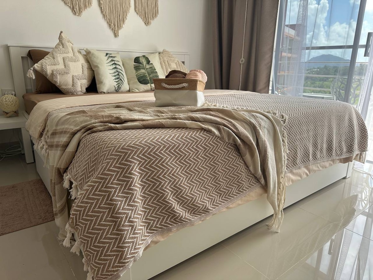 A private luxurious condo in northern Mai khao, only 15 min drive from airport. 98 Sqm flat with 2-bedroom, 2 bathrooms (in master bedroom & living room), and 2 balconies. The condo's surounded by 5-star hotels (JW marriott, SALA & Renaissance).