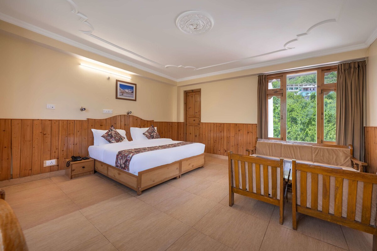 Насладитесь роскошью и очарованием в самом сердце Гималаев в нашем двухуровневом люксе на мансарде, предназначенном для тех, кто хочет оставаться ближе к природе, не жертвуя комфортом. Просторный номер в стиле дуплекс с уютными интерьерами, идеально подходит для семей или друзей. Деревянный чердак добавляет теплую, деревенскую атмосферу с потрясающими видами на заснеженные вершины и реку Баспа. Постельное белье премиум-класса, примыкающая ванная комната, зона отдыха и большие окна, которые наполняют комнату естественным светом.