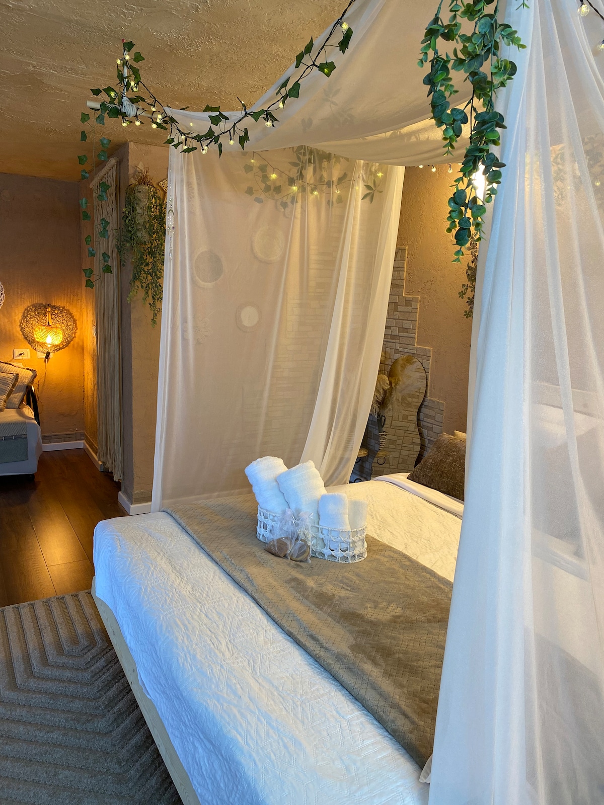 Эта очаровательная квартира расположена в верхней части Михманима, в окружении сада и леса. К услугам гостей отдельный вход и спокойный отдых. В распоряжении гостей две комнаты, каждая с собственной ванной комнатой, и полностью оборудованная мини-кухня. Расположенная в тихом, пасторальном окружении, наполненном пением птиц, она идеально подходит для отдыха. Мы, Эти и Реувен, живем над квартирой с Люцифером, нашим любопытным котом, и тепло приветствуем вас, чтобы насладиться Галилейским отдыхом на природе и спокойствием.