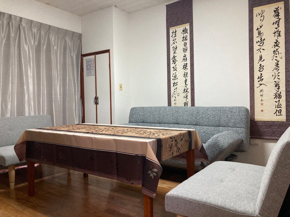 Идеально подходит для семейных и групповых поездок! 9 минут ходьбы от центрального железнодорожного вокзала Кагосимы. В вашем распоряжении весь дом площадью 100 квадратных метров. Парковка на 2 машины