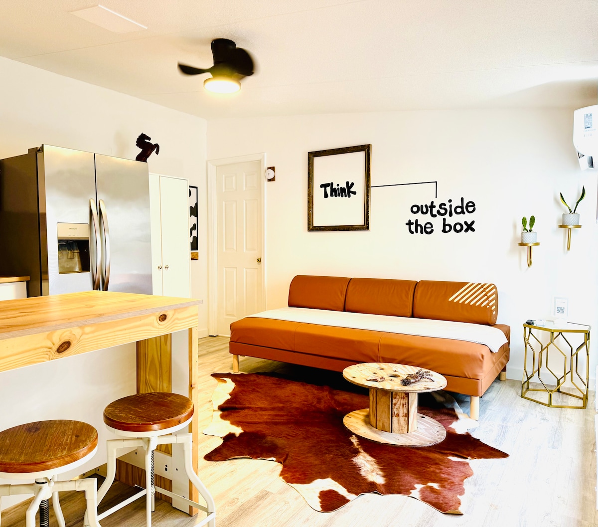 Совершенно новый частный дом в парке Mill Creek RV Park. Дом с 1 спальней с двуспальной кроватью размера Queen size и дополнительным выдвижным диваном. Игровой двор/детская кроватка для 5-го гостя. Полностью оборудованная кухня, стиральная машина/сушилка. Насладитесь центральным расположением на зеленой зоне с прудом для спокойного уединения на заднем дворе. Полный доступ ко всем удобствам Милл-Крик ( бассейн, тренажерный зал, игровая площадка, кукурузная дыра, маринованный мяч, зелень). 2 телевизора с телевизором в блоке 1 миля до Walmart 15 миль до Disney World & Universal. 13 миль до аэропорта Орландо.