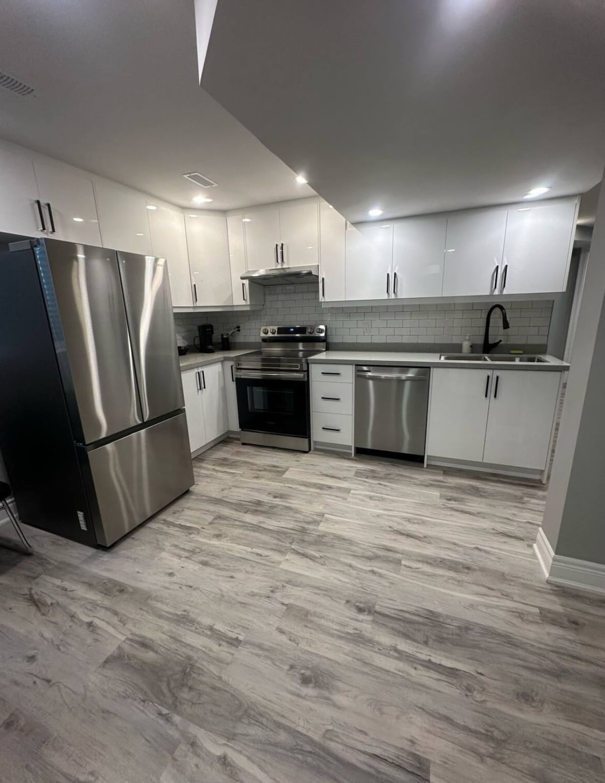 Полностью меблированный, высококлассный верхний этаж с 3 спальнями и кроватями размера Queen size, парковкой, стеклянным душем, полом с подогревом, большой планировкой площадью 1600 кв. футов, камином, 50-дюймовым телевизором; естественным дневным освещением на всей территории, прачечной на территории, WI-FI, белой глянцевой современной кухней с кварцевым островом, современным декором в стиле белого евро и мебелью IKEA, 9-футовыми потолками , включая ограниченный доступ к тренажерному залу с отказом от ответственности, а также есть терраса с барбекю. Также новый с 20 июня - NEMA и Tesla. Зарядка электромобиля доступна!!!