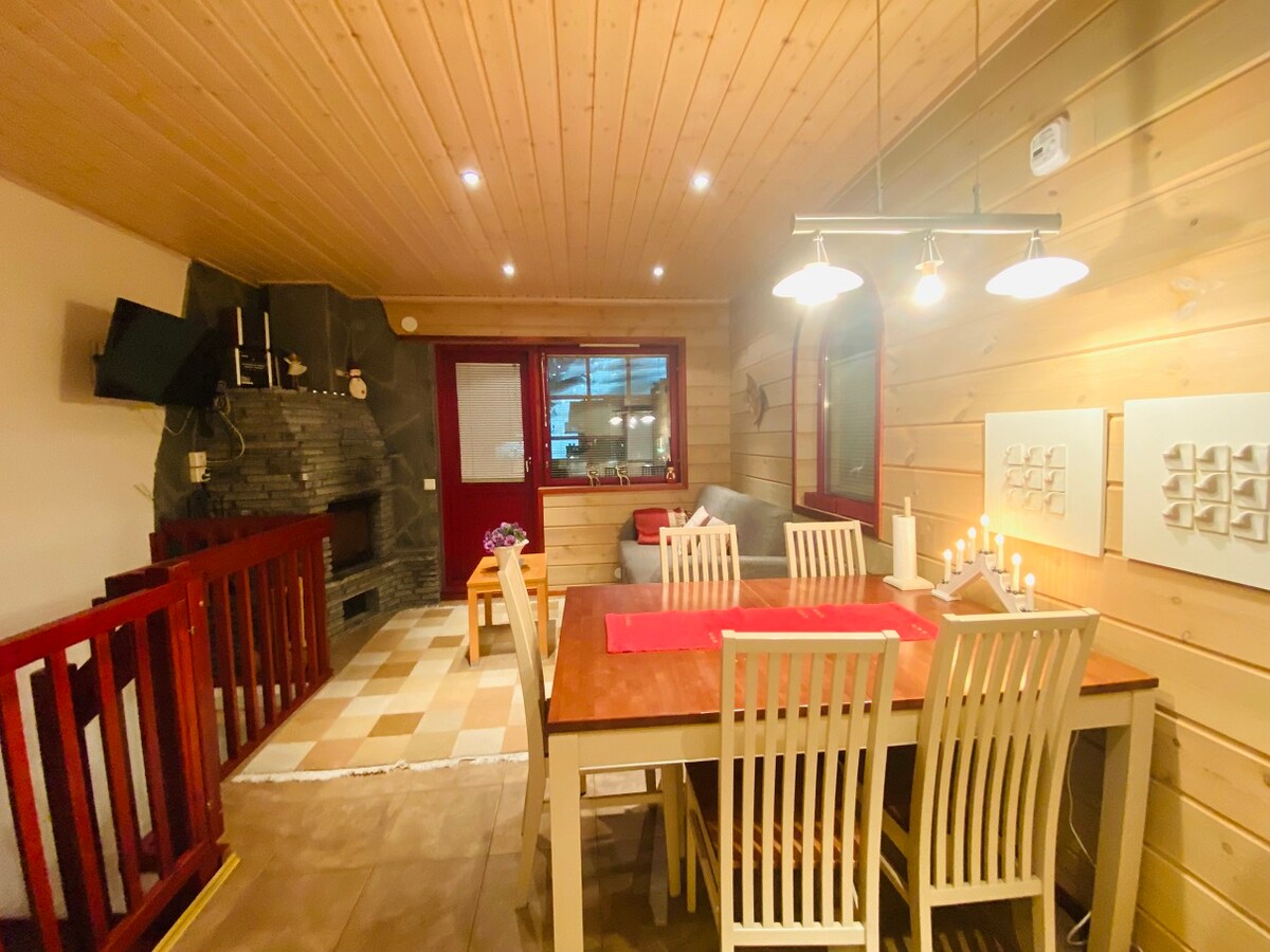 Мы арендуем атмосферный коттедж в бревенчатом коттедже, в непосредственной близости от услуг Леви. Квартира полностью оборудована, включая Wi-Fi, стиральную машину, сушильный шкаф, дорожную кровать для детей, отремонтированную ванную комнату, тепловой насос с источником воздуха, камин, террасу, гидромассажную ванну и т. д. 2,6 км до центра города и услуг. Рядом есть лыжные трассы, снегоходы и лыжные автобусы. Абсолютно спокойное и центральное расположение рядом с услугами. Примечание!!! - Базовая аренда коттеджа не включает использование гидромассажной ванны. - Выходные: 450 €.