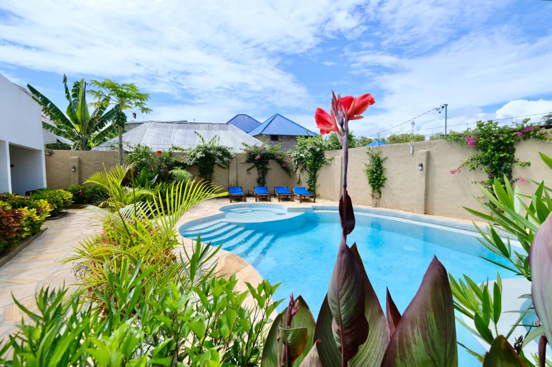 Расслабьтесь и расслабьтесь в наших недавно построенных стильных апартаментах. Наслаждайтесь бассейном перед вашей частной квартирой или прогуляйтесь 7–8 минут до пляжа поблизости. Мы находимся вдали от массового туризма, поэтому, если вы цените свою конфиденциальность, это место для вас. Идеально подходит для молодых пар! Мы можем организовать сафари на материк и однодневные поездки на Занзибар. До магазинов и супермаркетов можно добраться за 5 минут на машине или мопеде. Или мы с радостью доставим ваши продукты к вашему порогу.
