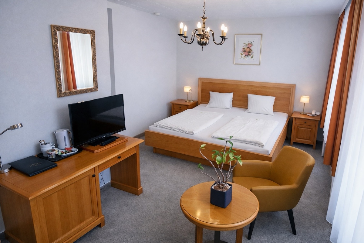 Unser komfortables Doppelzimmer bietet den idealen Rückzugsort für zwei Personen. Ausgestattet mit gemütlichem Doppelbett, modernem Bad, WLAN und TV sorgt es für einen entspannten Aufenthalt. Die zentrale Lage ermöglicht kurze Wege zu Restaurants und Geschäften. Auch der Wörthersee ist nur wenige Minuten entfernt und ideal für Spaziergänge und Ausflüge.