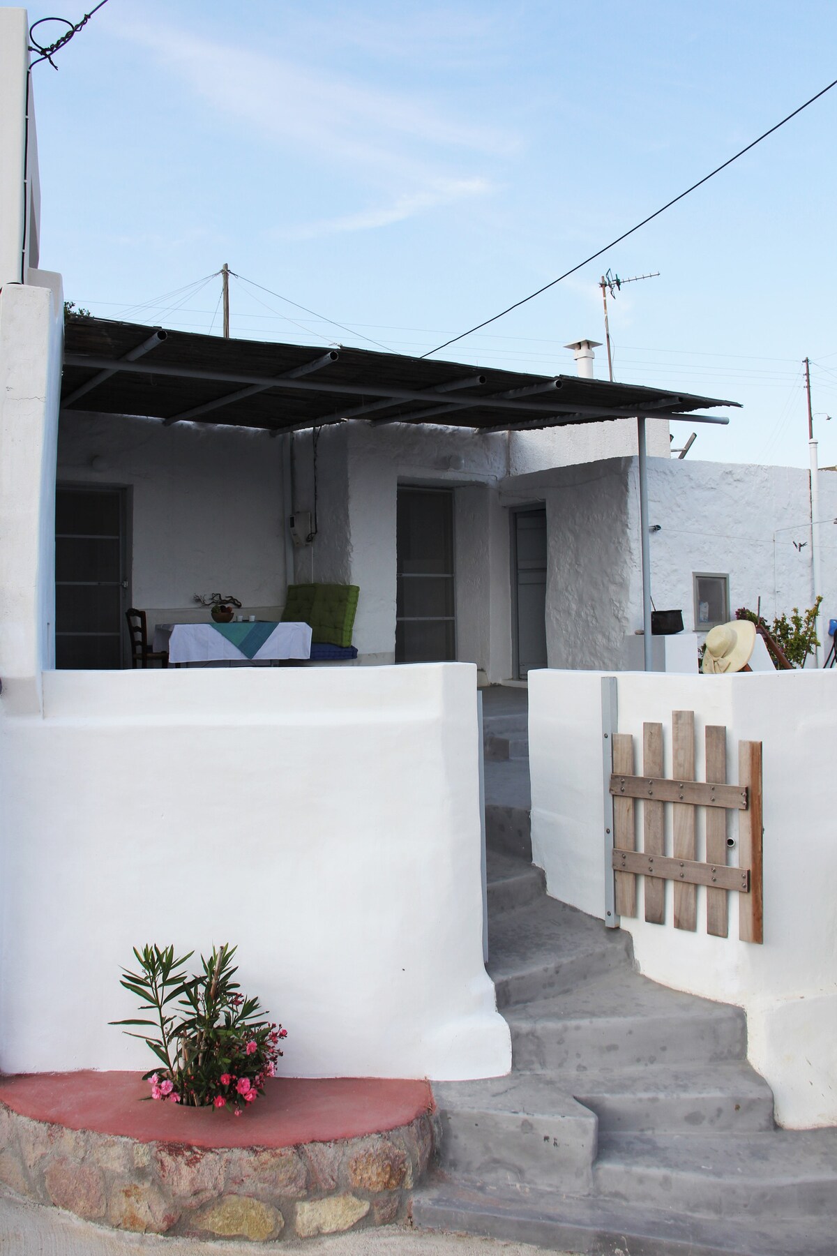 Нашему традиционному кикладскому дому сто лет и раньше было летним уединением для нашей семьи..Он находится на набережной в живописной рыбацкой деревне Мандракия на северном побережье острова. Наш дом находится прямо на берегу воды. и поэтому имеет панорамный вид на море. С нашей веранды вы будете наслаждаться захватывающим видом на Эгейское море и иметь прямой доступ к воде. Вы идете через парадную дверь, спускаетесь по лестнице в море для сноркелинга или плавания.