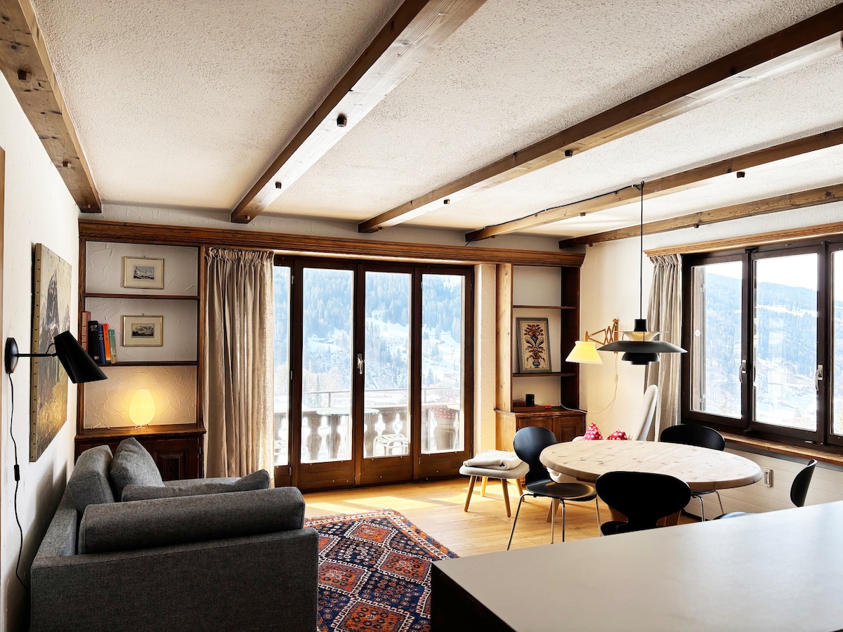 Наша уютная квартира с камином имеет фантастический вид на ледник и находится в тихом уголке Клостерса. Gotschna Gondola находится в 7 минутах ходьбы, как и все рестораны и магазины. 100 кв. м оборудованы просторным ощущением высокого потолка (см. очаровательные балки?) и совмещенную гостиную и столовую. В 3 спальнях могут разместиться еще большие семьи или вы можете взять с собой друзей. внимательно прочитайте подробности: на 3-м и одна спальня небольшая (отлично подходит для детей).