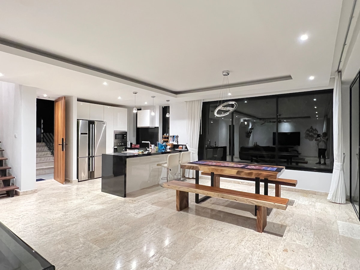 Частная вилла площадью 260 м² с открытой планировкой и видом на море → Ежедневный завтрак → Панорамный бассейн → Зал для йоги и массажа В → каждой спальне есть собственная ванная комната. → Ежедневная уборка. → Гостеприимство с персоналом на месте → Высокоскоростной интернет и Wi-Fi → Smart TV с Netflix Аудиосистема → Bose → Бесплатный чай, кофе, питьевая вода → Бесплатная парковка → Вода и электричество включены. → барбекю, посудомоечная машина, морозильная камера, платная стиральная машина и другие лучшие удобства. → Услуги шеф-повара, аренда автомобилей и другие услуги по запросу.