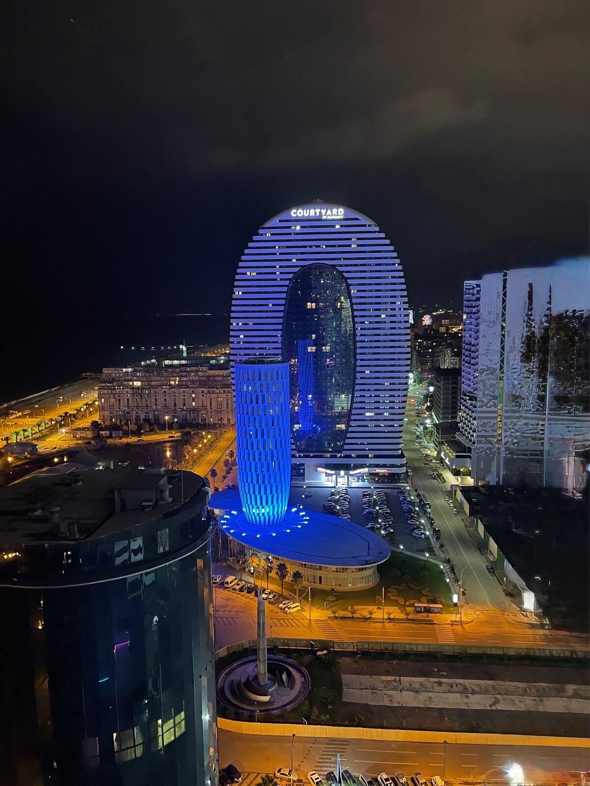 Эта роскошная квартира площадью 50 кв. м расположена в центре Батуми. В престижном здании (Courtyard by Marriott). Очень близко к морю (100-метровое расстояние) Квартира находится на 25-й муке с невероятным видом на море. В нем есть все необходимое для комфортного отдыха и проживания в течение длительного времени. Кухонная утюг, а также утюг, стиральная машина, пылесос и т. д. В здании есть внутренний бассейн, спа-салон и казино, а также высококлассный ресторан, где можно позавтракать за дополнительную плату.