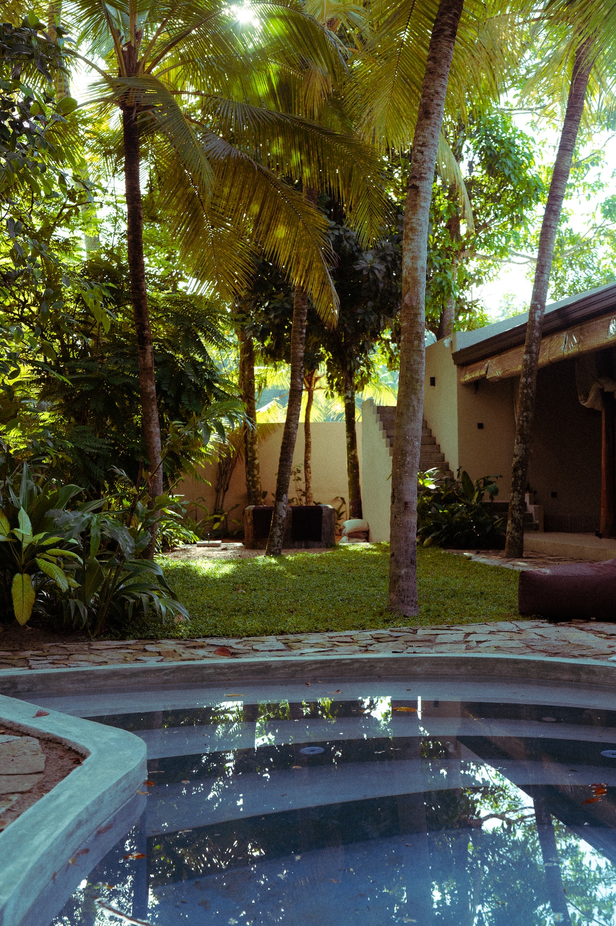 Cocoya — это действующая плантация кокоса и корицы. Наш дом Sama означает «мир» на сингальском языке. Он спроектирован так, чтобы быть простым, открытым и просторным домом на плантации, который соединяется с природой. К услугам гостей открытое жилое пространство, кухня и прямой доступ к 17-метровому бассейну. Наверху у нас есть главная спальня и спальня для младшего ребенка, которые имеют общий балкон с видом на плантацию. В обоих есть душ под открытым небом. К услугам гостей полностью оборудованная кухня и эксклюзивный доступ к бассейну. У нас нет кондиционера.