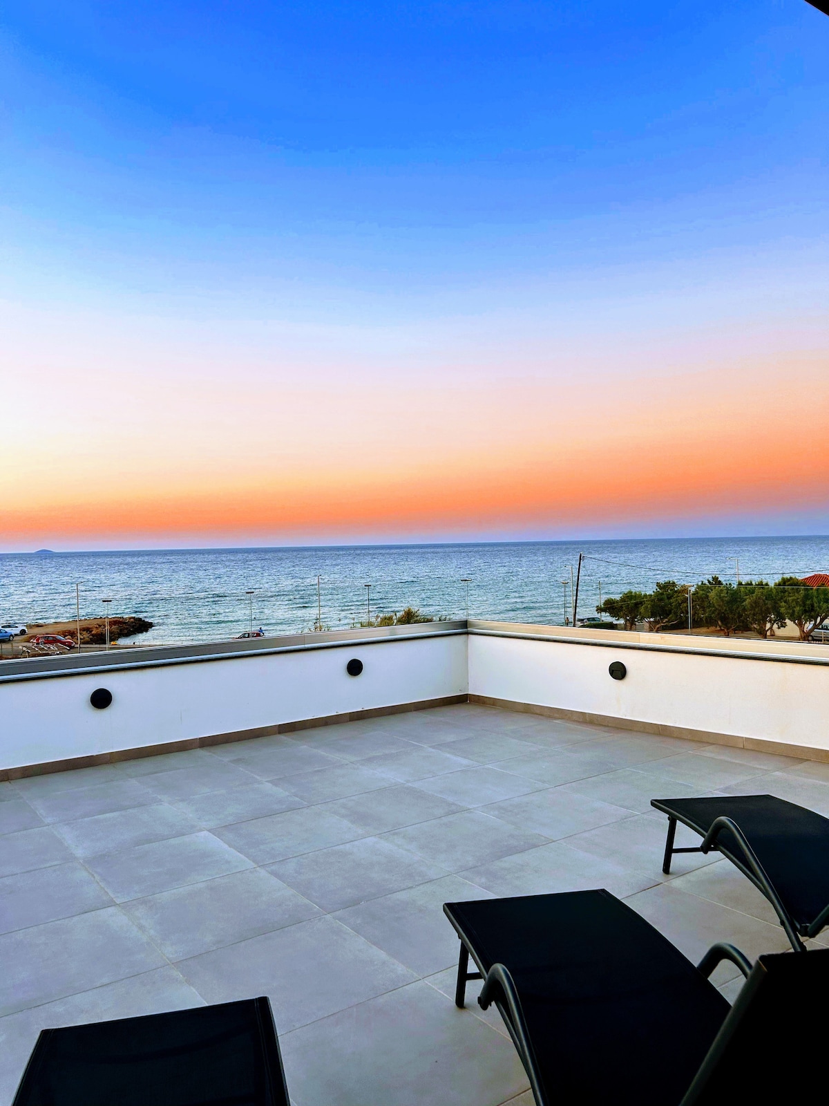 Escape to Seafront Suites, a private hideaway beside a celestial blue sea on Hersonissos stunning Beach Rivera. Nestled on a tranquil and secluded bay with panoramic views and sunsets that dazzle, the rest of the world does not exist, giving you freedom to release your inhibitions and live for the moment. More information Our luxury Suite with garden view is modern and minimalist with extremely comfortable guest rooms, earth tones and modern touches to soothe the mind and warm the soul.