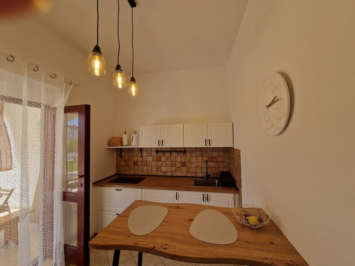 Квартира находится в идеальном месте. Он находится в 400 метрах от моря. До Задара 20 минут езды на машине. Расположен рядом с природным парком на озере Врана. В квартире есть спальня с удобной двуспальной кроватью и шкафом, ванная комната с душевой кабиной. Кухня/гостиная в одном месте с выдвижным диваном для одного человека, плитой, всей посудой для приготовления пищи, столом, чайником и кондиционером. Вместимость - 3 человек. Также есть частный паркинг.