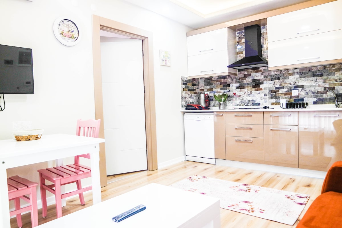 Наша квартира, которая находится в 4 минутах езды на машине до пляжа Анталья Коньяалты и в 3 минутах до 5M Migros, предоставляет проживание с кухней, гостиной, спальней, ванной комнатой, балконом и мебелью. Wi-Fi 500 Мбит/с, светодиодный телевизор, кондиционер, стиральная машина, посудомоечная машина, природный газ, комбинированный бойлер, сотовый радиатор, встроенная гарнитура, микроволновая печь, кофемашина с фильтром, турецкая кофемашина, тостер, кухонная утварь, фен. Аквариум Антальи 3 км Аэропорт Антальи в 16 км. Автовокзал Антальи - 6 км. 200 метров до супермаркетов.