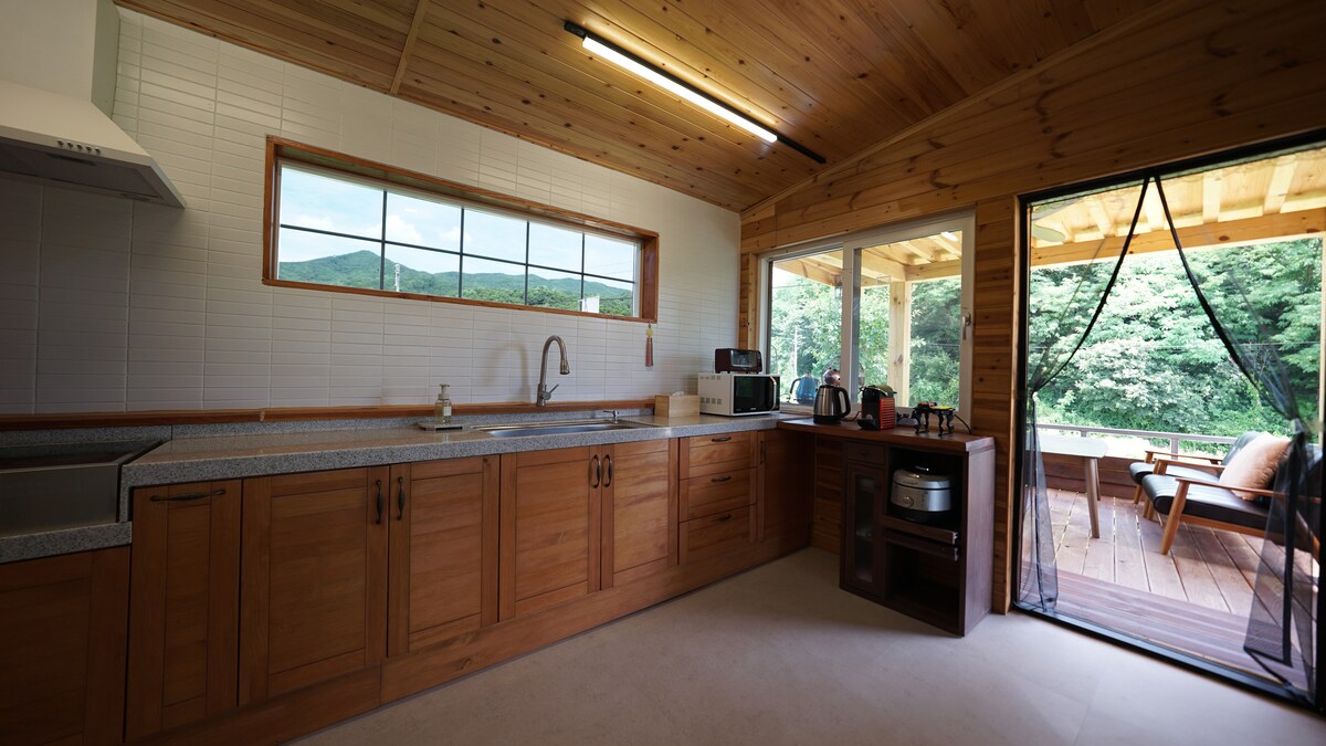 Это полное пространство 250 пён для одной команды. Небольшой дом, построенный на хребте сосновых деревьев в лесу Кваннынг. Это недалеко от Сеула, но, как ни странно, это сельская местность, и она полна тихих лесных звуков и лесных запахов. Это место, окруженное лесами. Все помещения доступны только одной команде с момента прибытия до времени выезда. Звук сна состоит из 2 домов и 2 теплиц. Надеюсь, вы сможете насладиться приятным отдыхом в большом доме и маленьком доме, 2 теплицами с разными ощущениями, костровой ямой во дворе и небольшой набережной:) Отдохните в тихом и спокойном доме.