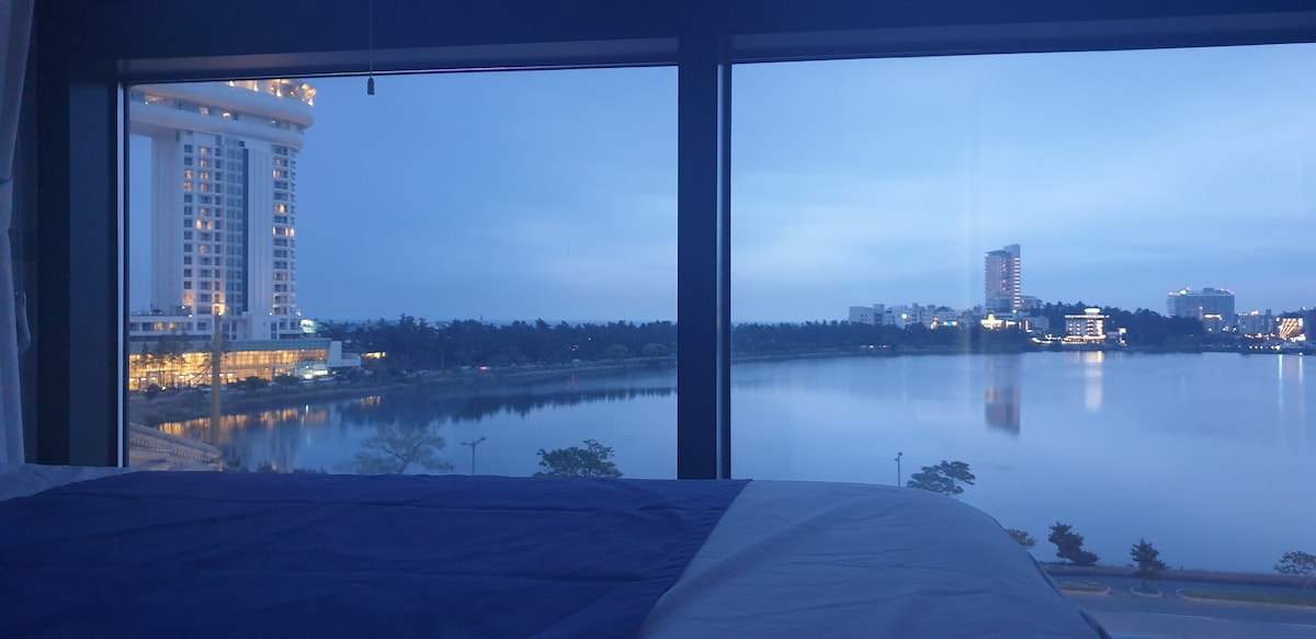 #Вид на озеро Кёнпхо#Синее море и озеро видны с кровати, кофейня Anmok, ресторан Mukhwa, тофу Chodang
