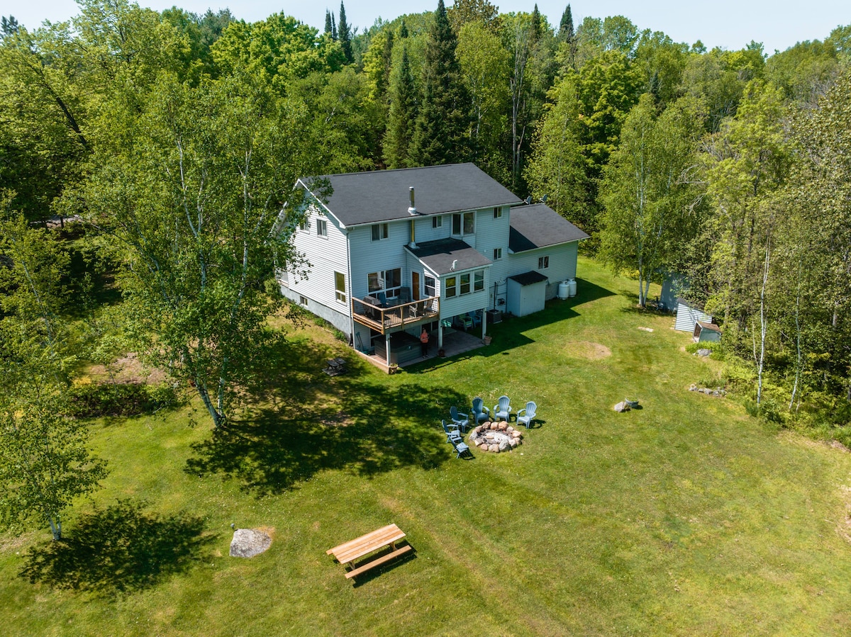 Отдохните и восстановите силы в нашем уютном и спокойном лицензированном жилье с потрясающими видами, просторным участком и собственным выходом к озеру. 15 минут от Халибертона. На главном этаже есть кухня открытой планировки, ванная комната, гостиная, дровяная печь и выдвижной диван. Наверху есть лофт с 2 односпальными кроватями и спальня с кроватью размера Queen size. Терраса с барбекю, патио и костровищем окружены деревьями. Соберитесь у костра и полюбуйтесь звездами. Тропа проходит через лес к причалу, каяку и каноэ. Только с домашними животными. Желаем приятного отдыха!