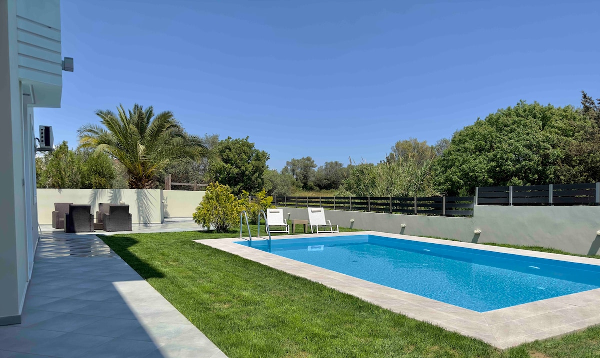 LodgyHub offers accommodation in Koskinou, Rhodes, with a garden and pool view. It features a private outdoor pool of 18 sqm, a lush garden, and a veranda. The property provides privacy, security, free Wi-Fi, and private parking. The air-conditioned house consists of two separate bedrooms, a living room, a fully equipped kitchen, and one bathroom. The nearest airport is Rhodes International Airport, located 13 km from Naya Pool & Garden View Bungalow.