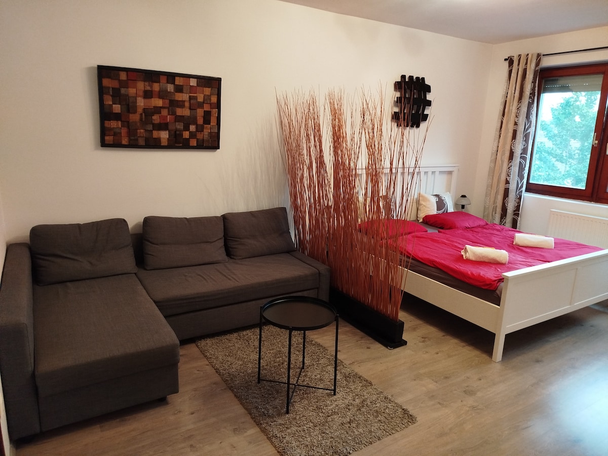 Красивая, уютная и новая квартира с гостиной и кухней, 1 спальней и ванной комнатой. Квартира расположена в центре Осиека недалеко от парка Зриневца и автовокзала. Квартира недавно отремонтирована и полностью оборудована, оснащена кондиционером и бесплатным Wi-Fi. В квартире есть бесплатное парковочное место в подземном гараже, расположенном в 50 м от квартиры, которое необходимо забронировать при бронировании квартиры.