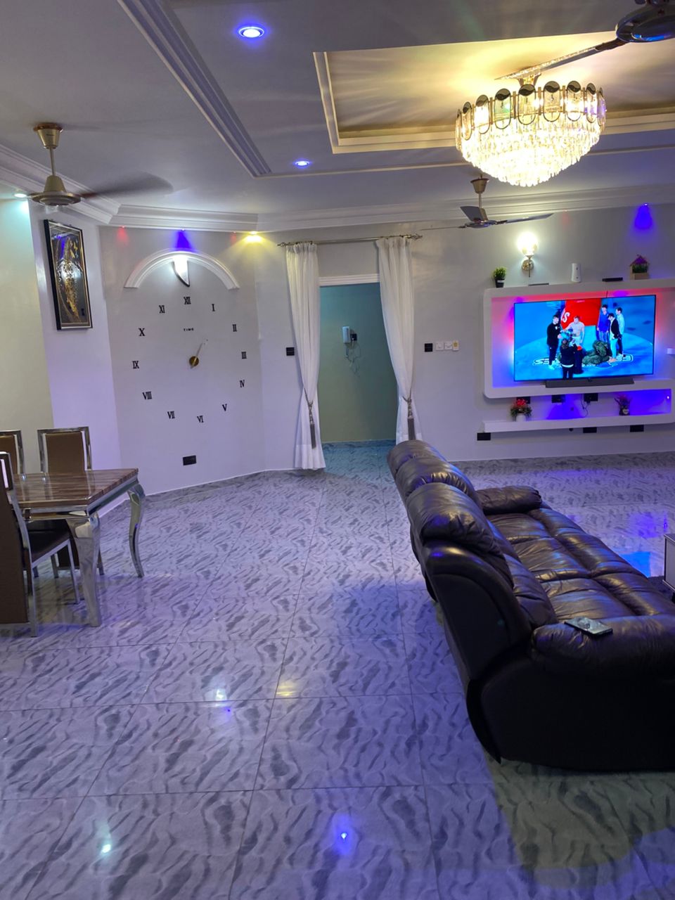 Luxurious 6-Bedroom Apartment for Short Stay! Enjoy a relaxing getaway in our stunning 6-bedroom apartment, equipped with: - 2 Master Bedrooms with Jacuzzis & solar-heated water - Air-conditioned rooms with fans for ultimate comfort - Spacious hall for entertainment or relaxation - Fully-equipped kitchen for self-catering - Dining area for family gatherings - 5 Washrooms with shower facilities for convenience Perfect for families, friends, or corporate stays. Less < 30mins drive from Airport